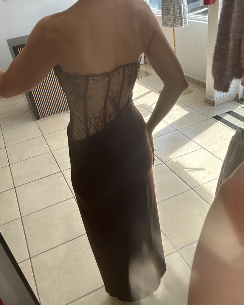 - lace strapless maxi dress