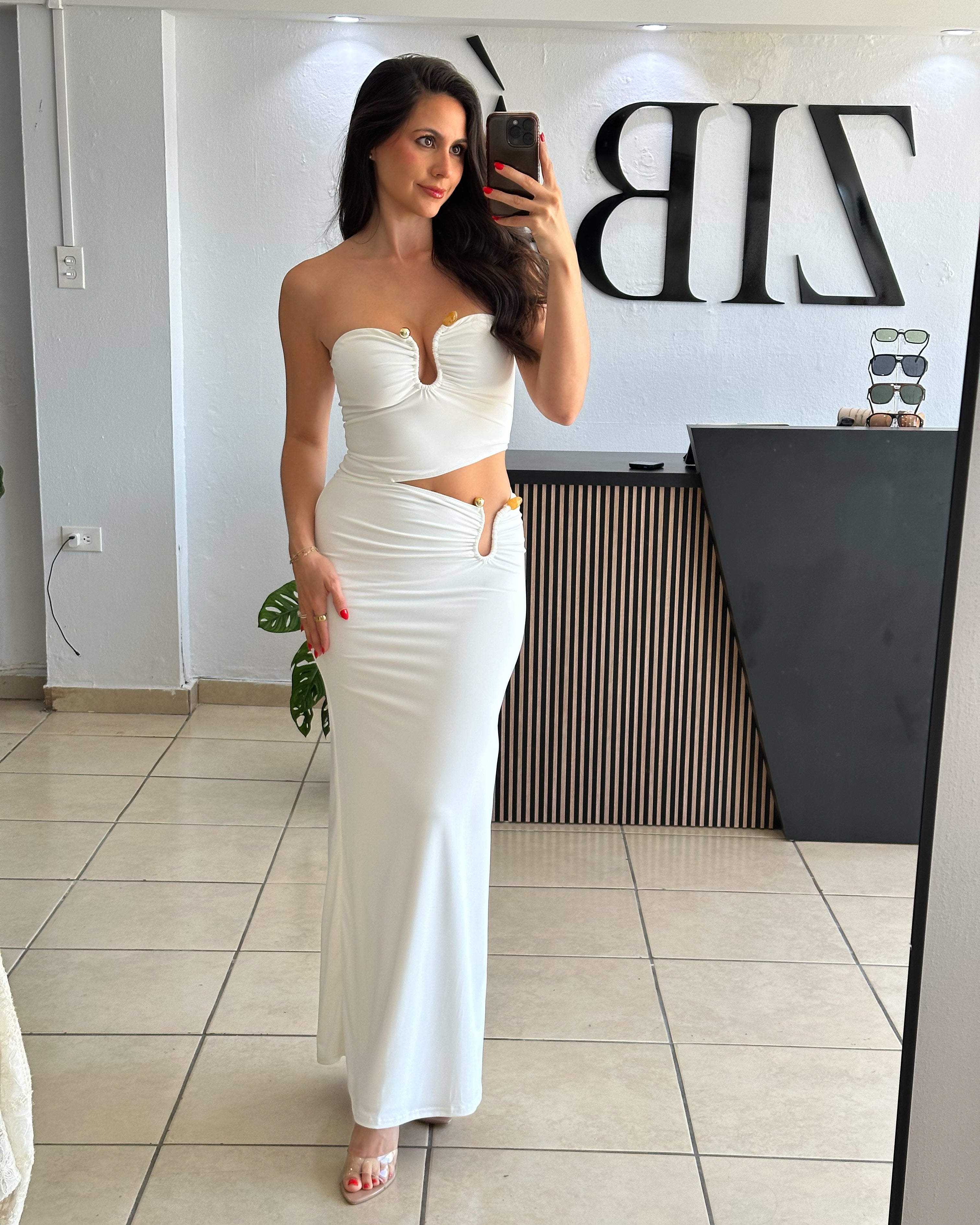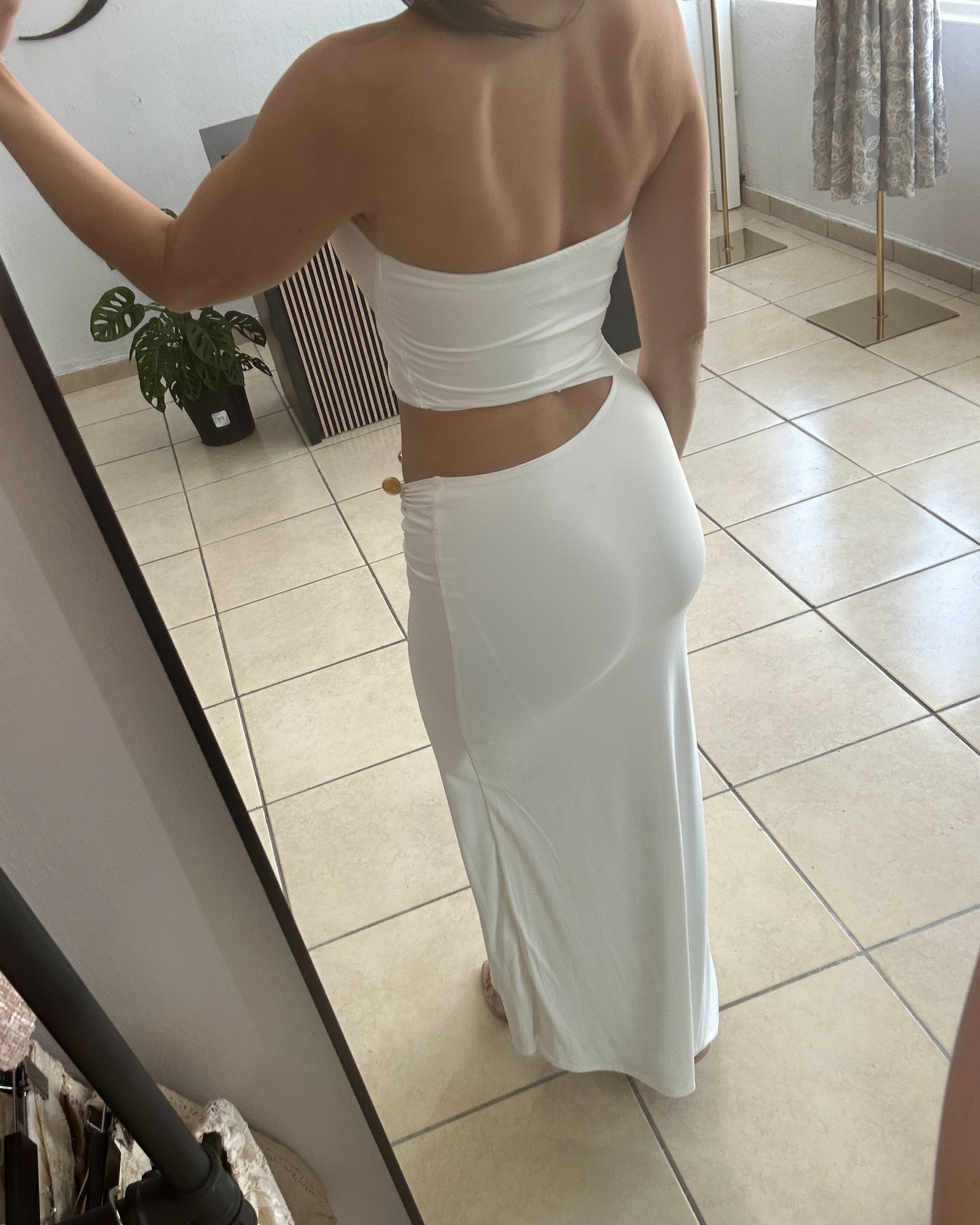 - cut out strapless maxi dress
