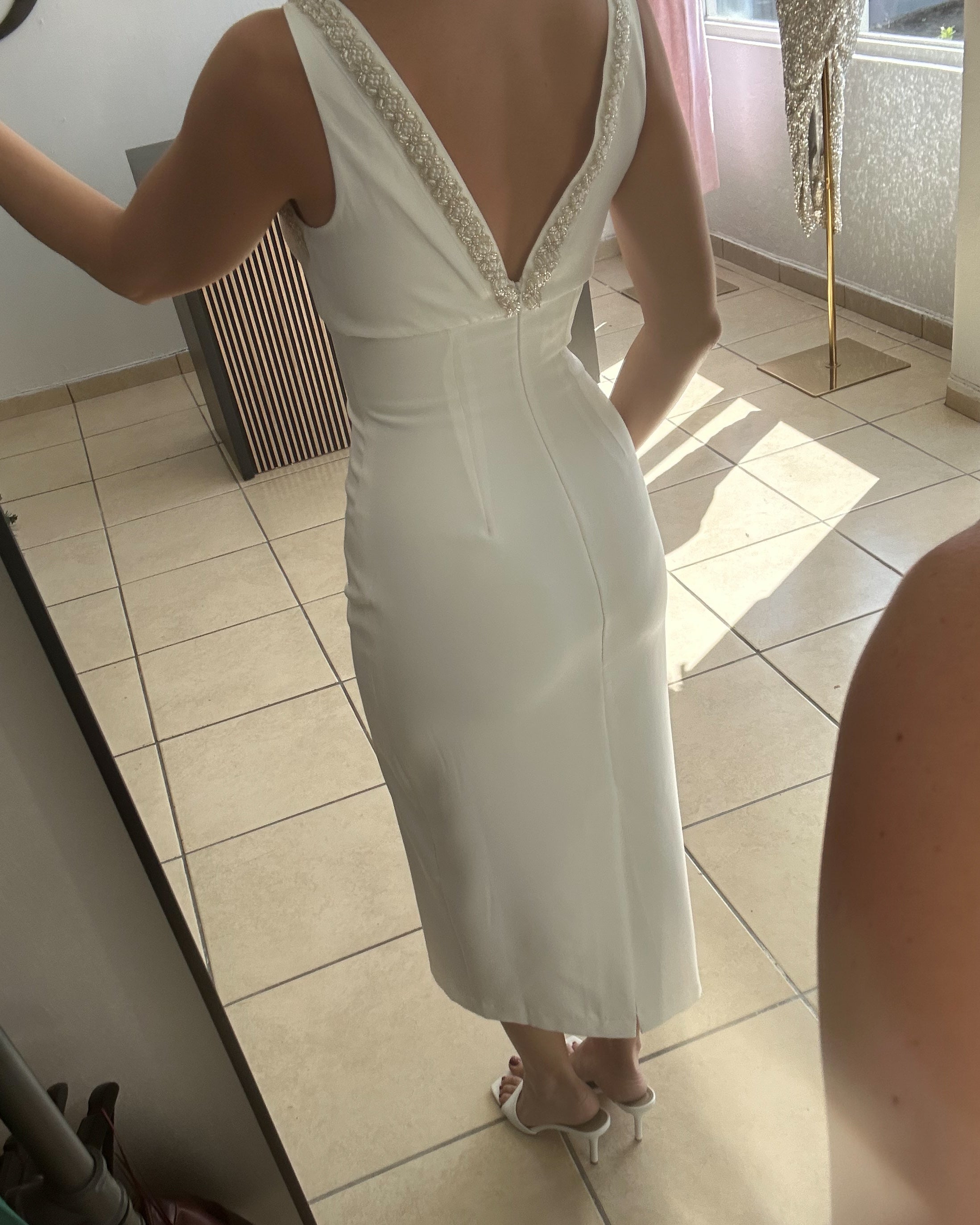 - beaded fitted midi dress